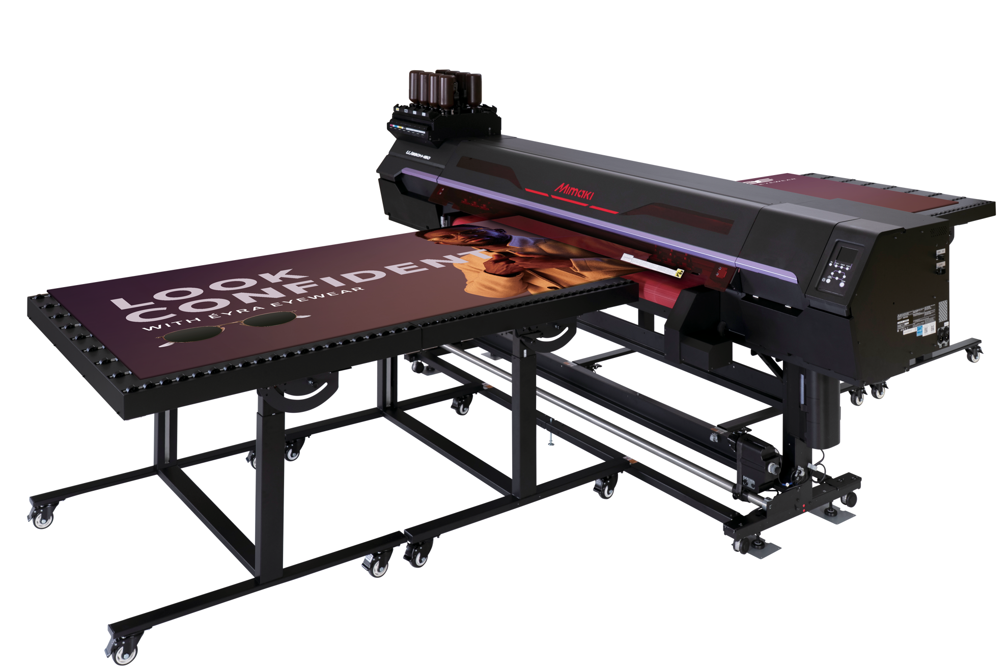 UJ330H-160 is a Hybrid UV inkjet printer that supports direct printing of rigid (board) materials in addition to output to roll materials. It minimizes space restrictions and expensive capital investments, while its design enables quick and easy switching between roll and rigid output, thereby also increasing production efficiency. It can flexibly handle various materials and applications even with limited personnel and space without using different equipment for each application.